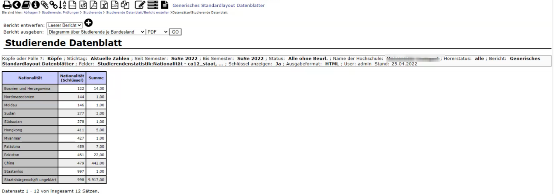 At a German University it was found that "nationality" of students seemed incorrect (see screenshot).